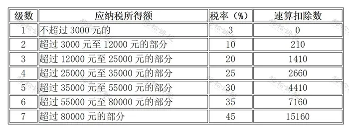 以全年一次性奖金收入除以12个月得到的数额对照月度税率表确定: